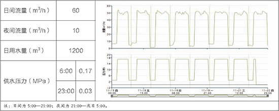 白庙子村日间水量由改造前的90m3/h降至现在60m3/h;夜间水量由改造前的80m3/h降至现在10m3/h,平均日节省水量余约1000m3,年节省水量约36万m3。同时,白庙子村减压前半年维修239处,减压后半年维修21处。